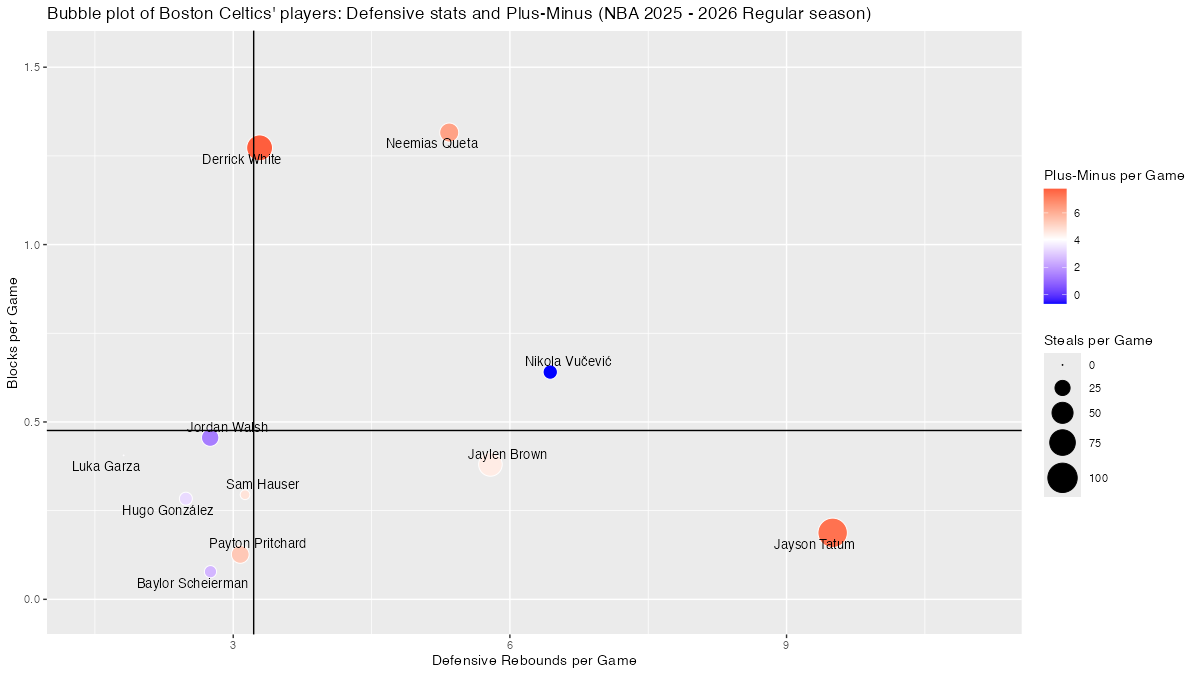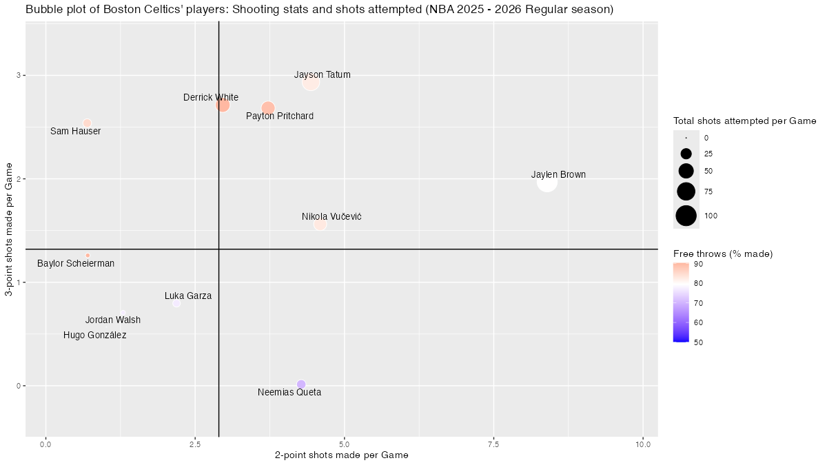 【ボストン・セルティックス】基本スタッツを用いたプレイヤーのバブルチャート <NBA 2025 – 2026 Regular Season>