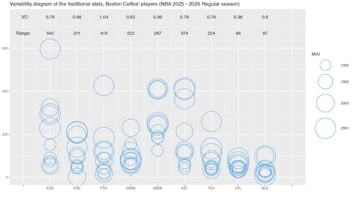 【ボストン・セルティックス】基本スタッツのばらつき ~変動係数と範囲~ <NBA 2025 – 2026 Regular Season>