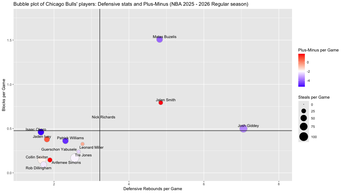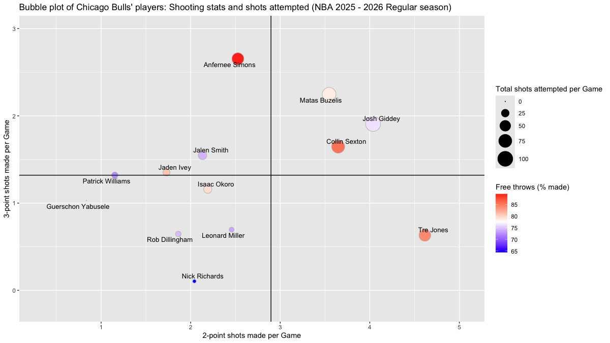 【シカゴ・ブルズ】基本スタッツを用いたプレイヤーのバブルチャート <NBA 2025 – 2026 Regular Season>