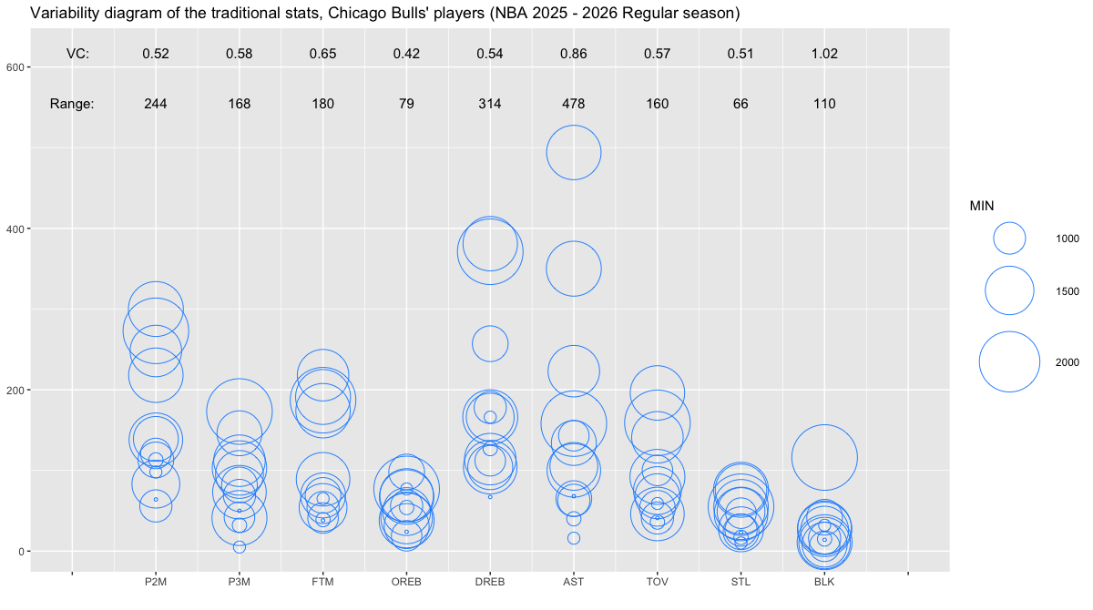 【シカゴ・ブルズ】基本スタッツのばらつき ~変動係数と範囲~ <NBA 2025 – 2026 Regular Season>