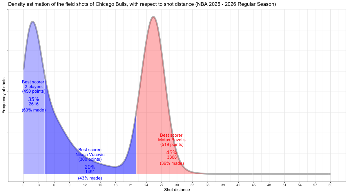 【シカゴ・ブルズ】シュートチャートとフィールドショット分布 <NBA 2025 – 2026 Regular Season>