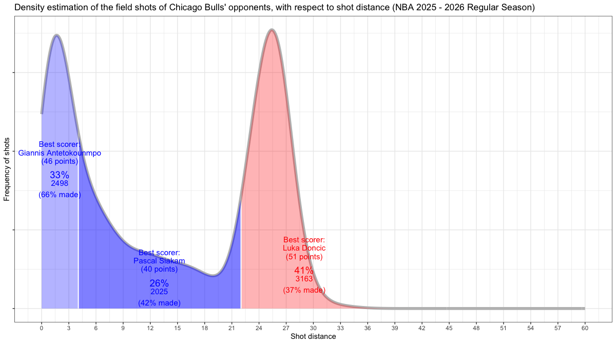 【シカゴ・ブルズ】対戦チームのシュートチャートとフィールドショット分布 <NBA 2025 – 2026 Regular Season>