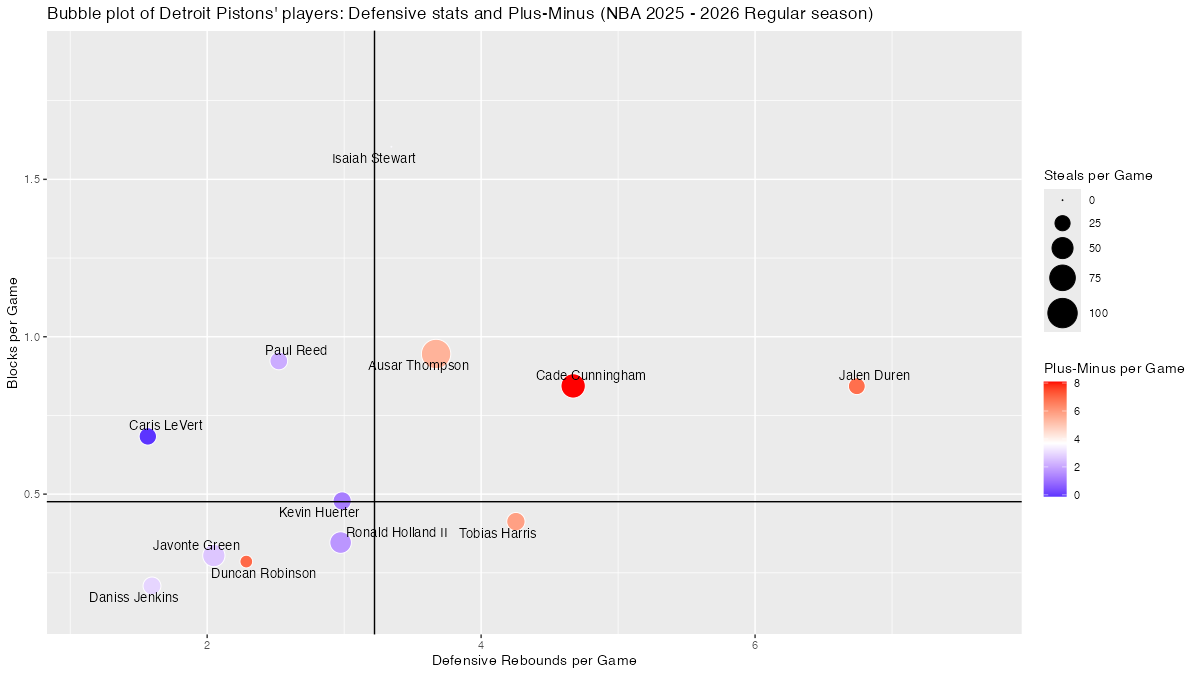 【デトロイト・ピストンズ】基本スタッツを用いたプレイヤーのバブルチャート <NBA 2025 – 2026 Regular Season>