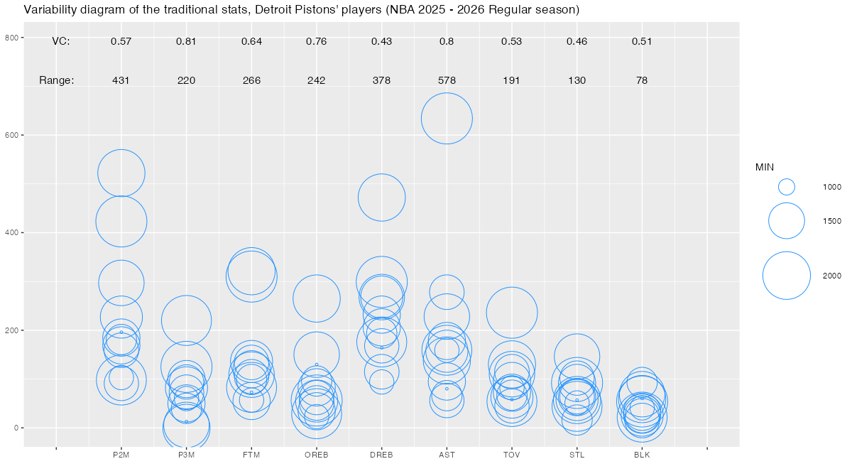 【デトロイト・ピストンズ】基本スタッツのばらつき ~変動係数と範囲~ <NBA 2025 – 2026 Regular Season>