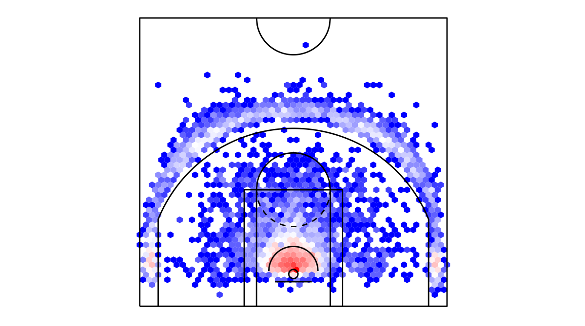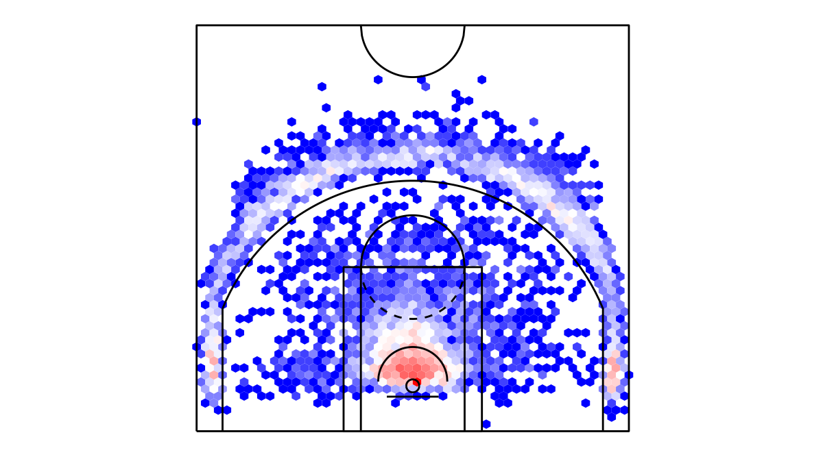 ヘックスビンマップ(Hexbin map)を用いたシュートチャート