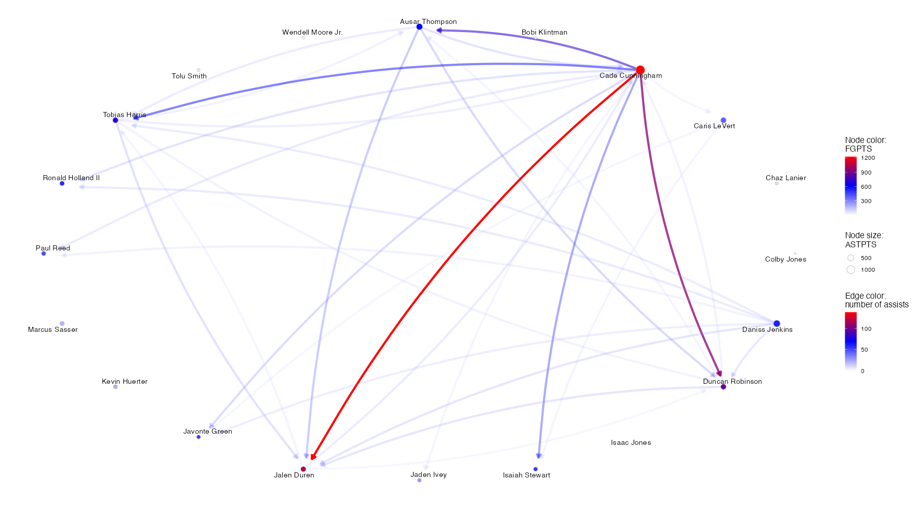 【デトロイト・ピストンズ】チーム内におけるアシストのネットワークと特徴<NBA 2025 – 2026 Regular Season>