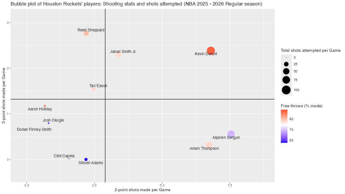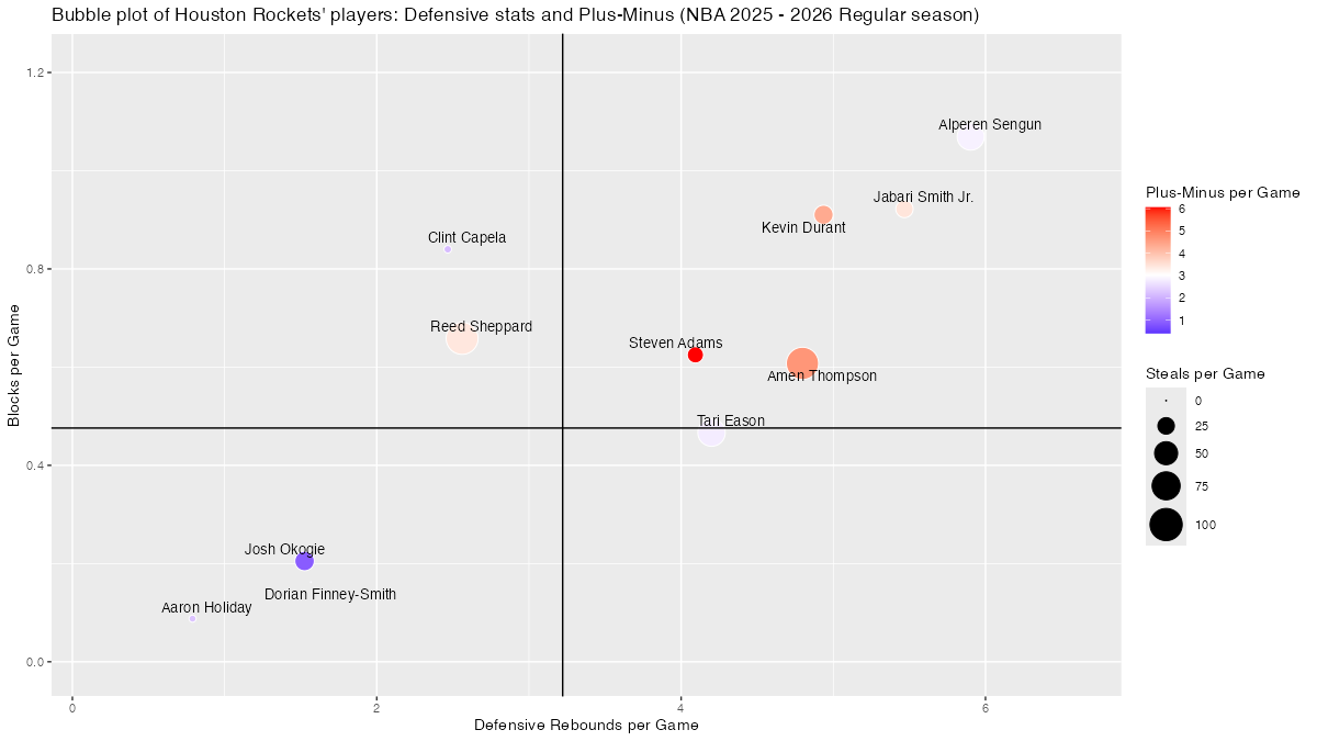【ヒューストン・ロケッツ】基本スタッツを用いたプレイヤーのバブルチャート <NBA 2025 – 2026 Regular Season>