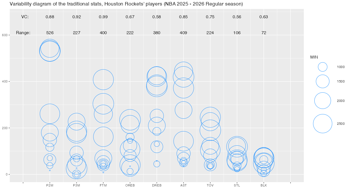 【ヒューストン・ロケッツ】基本スタッツのばらつき ~変動係数と範囲~ <NBA 2025 – 2026 Regular Season>