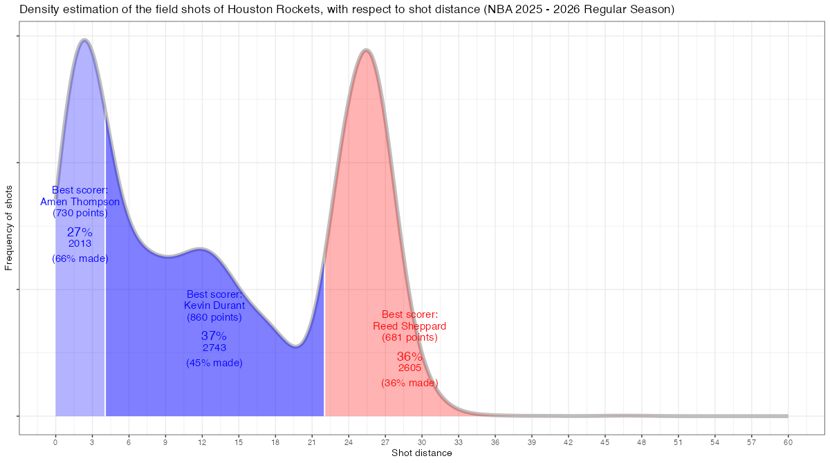 【ヒューストン・ロケッツ】シュートチャートとフィールドショット分布 <NBA 2025 – 2026 Regular Season>