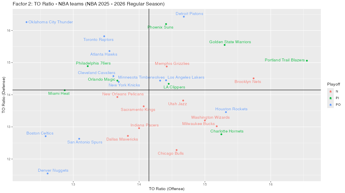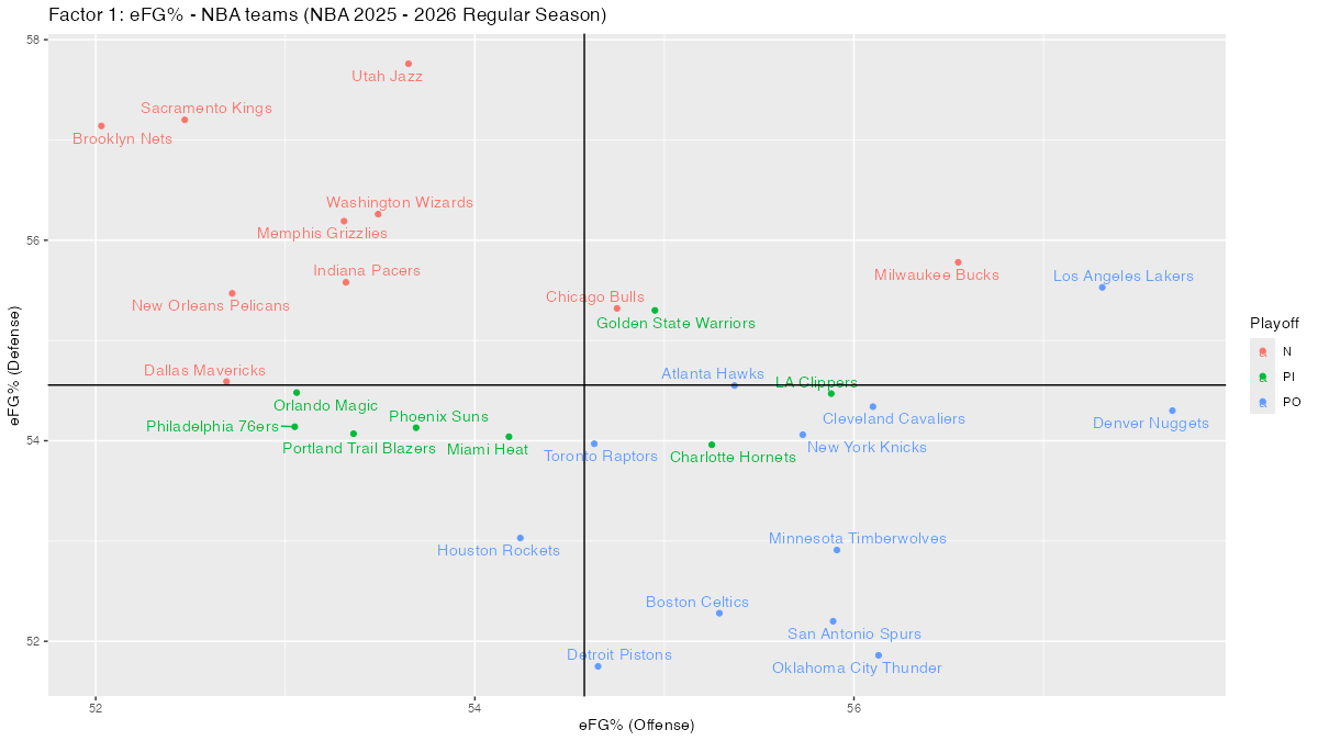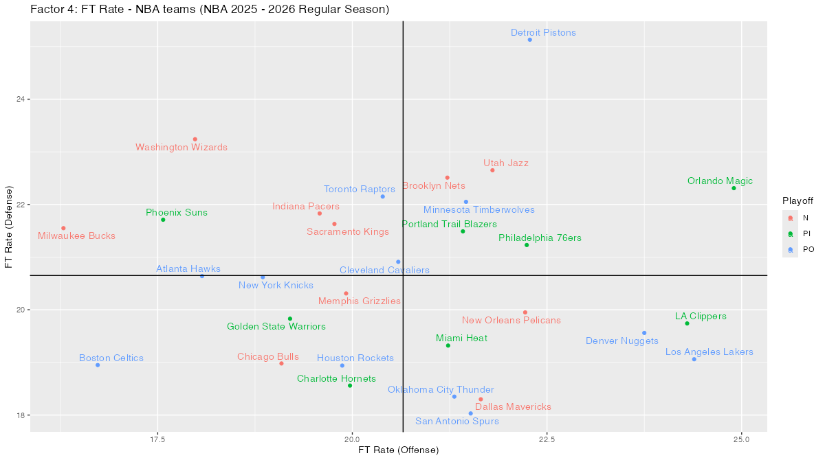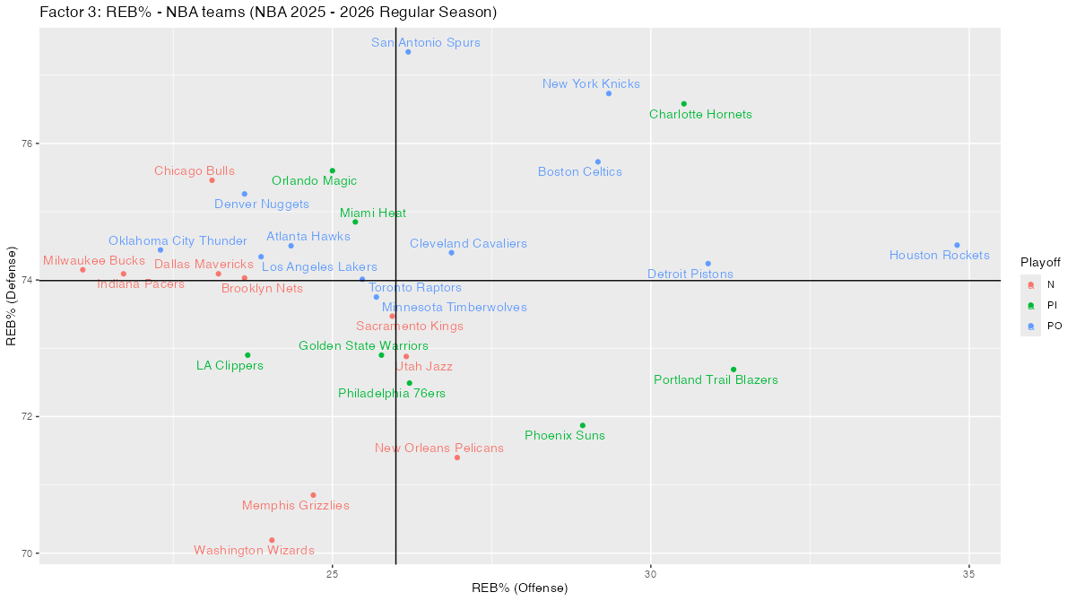3. NBAチームのPOSS, PACE, Ratings, Four Factorsと散布図 < NBA 2025 – 2026 Regular Season>