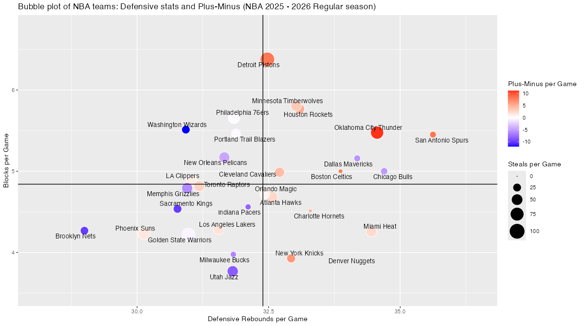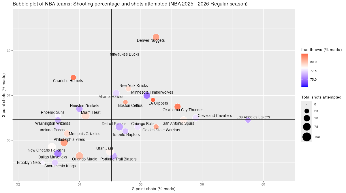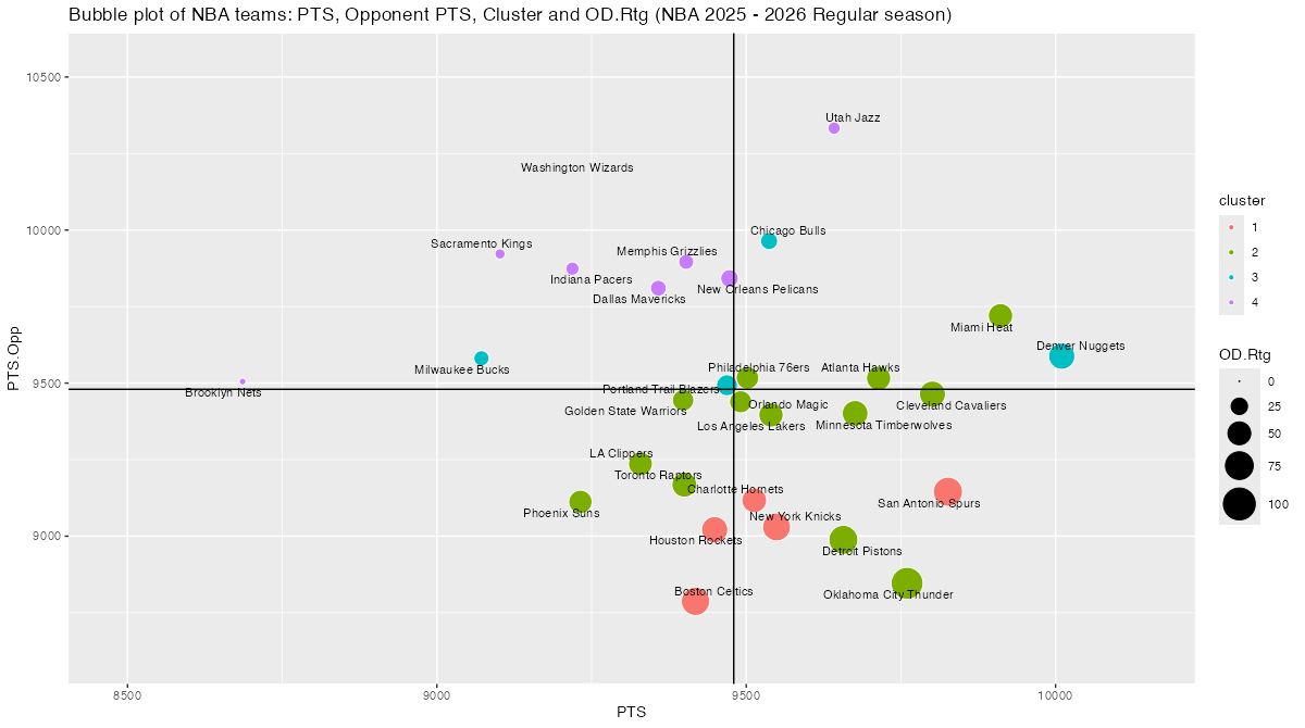 5. 基本スタッツを用いたNBAチームのバブルチャート <NBA 2025 – 2026 Regular Season>