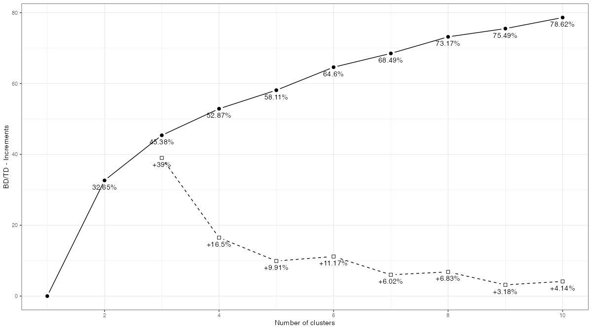 BD/TD Increments with respect to the number of clusters <NBA 2025 – 2026 Regular season>