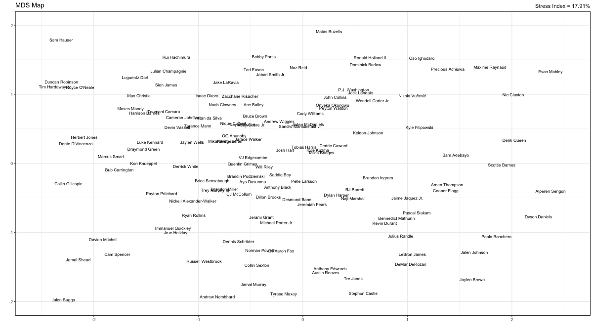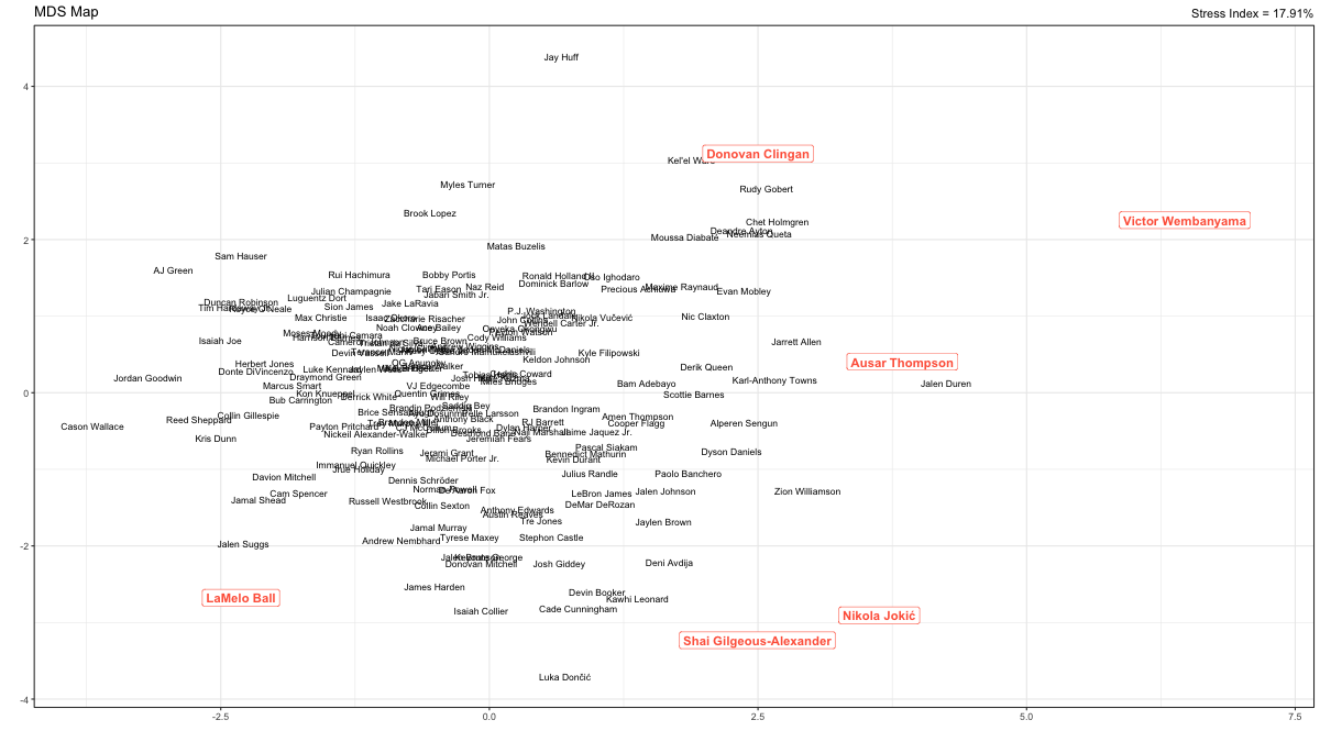 MDS map of NBA players <NBA 2025 – 2026 Regular season>