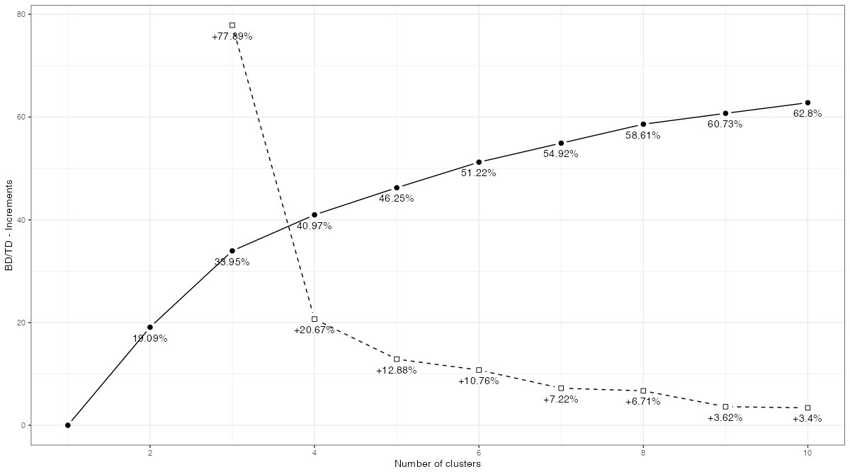 クラスター数の検討の際に指標となるBD/TDの内容は過去記事を参照。