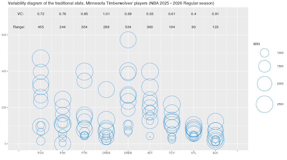 【ミネソタ・ティンバーウルブズ】基本スタッツのばらつき ~変動係数と範囲~ <NBA 2025 – 2026 Regular Season>