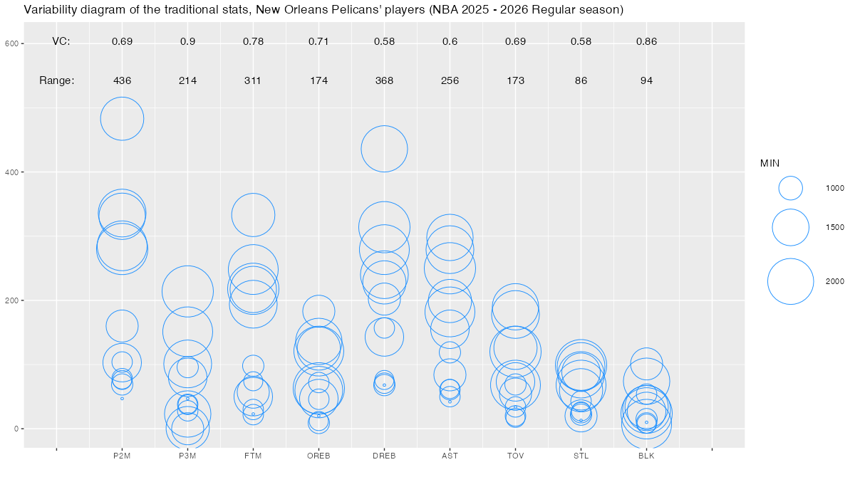 【ニューオーリンズ・ペリカンズ】基本スタッツのばらつき ~変動係数と範囲~ <NBA 2025 – 2026 Regular Season>