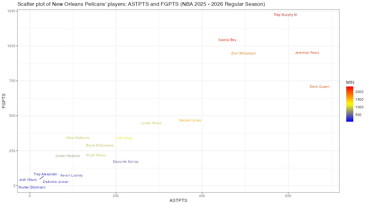 Field goals points and stats related to assists, New Orleans Pelicans’ players < NBA 2025 – 2026 Regular Season>