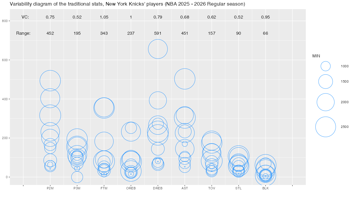 【ニューヨーク・ニックス】基本スタッツのばらつき ~変動係数と範囲~ <NBA 2025 – 2026 Regular Season>