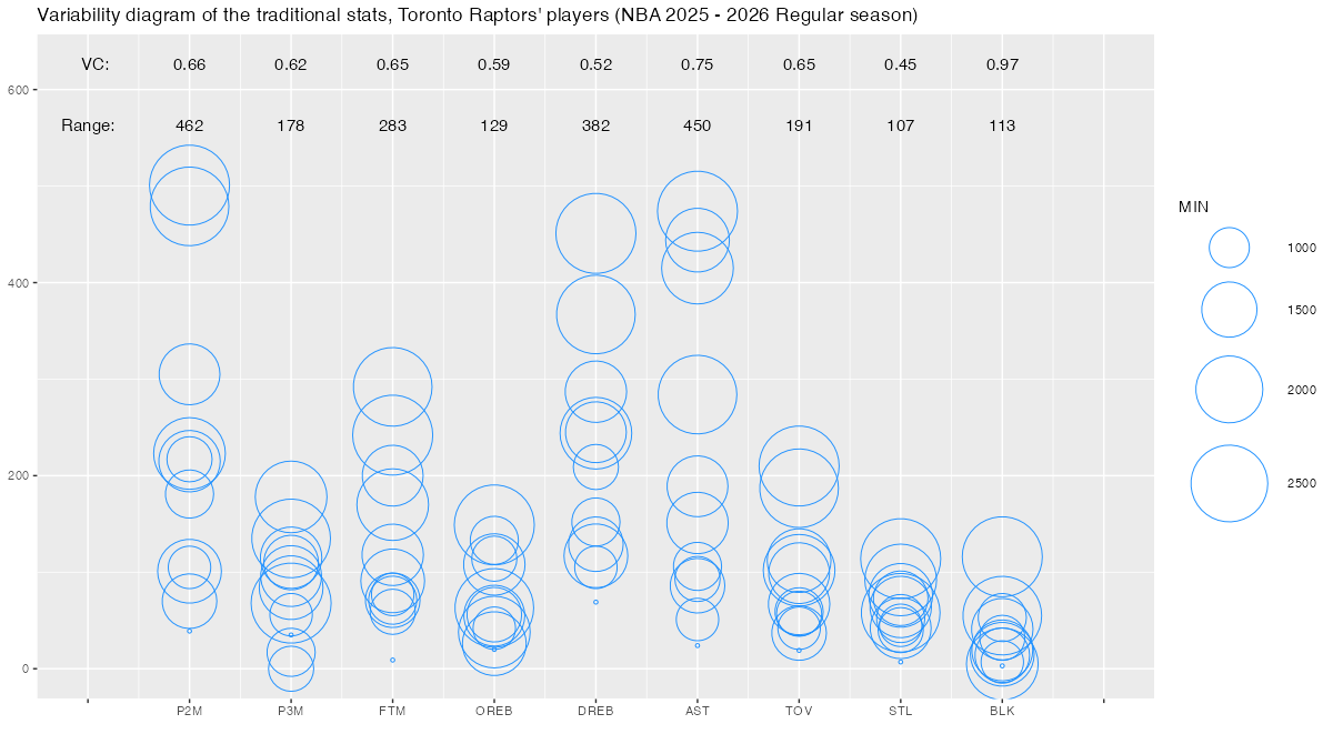 【トロント・ラプターズ】基本スタッツのばらつき ~変動係数と範囲~ <NBA 2025 – 2026 Regular Season>