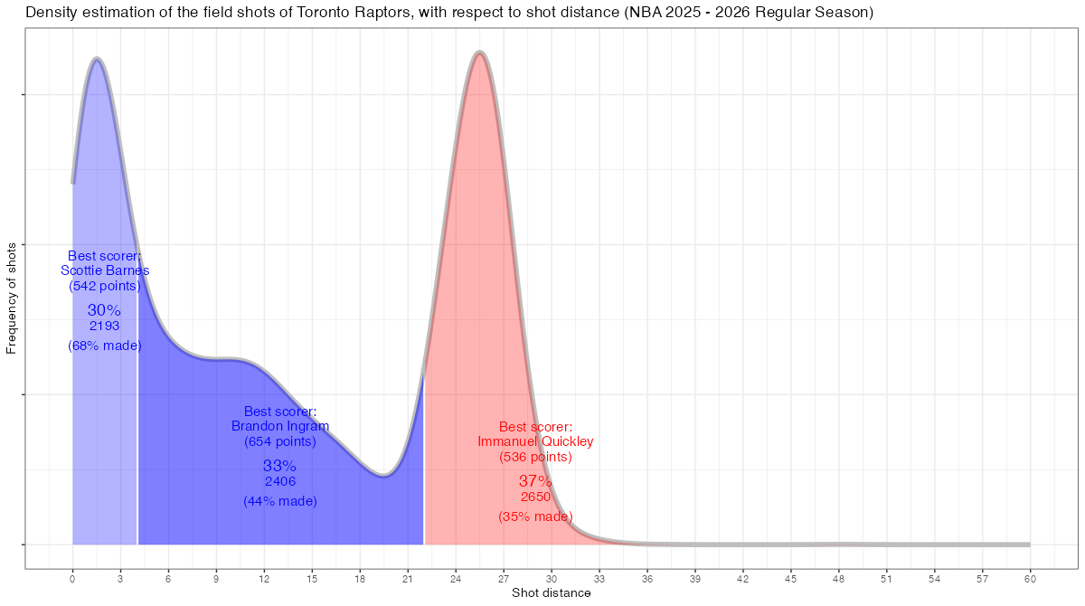 【トロント・ラプターズ】シュートチャートとフィールドショット分布 <NBA 2025 – 2026 Regular Season>
