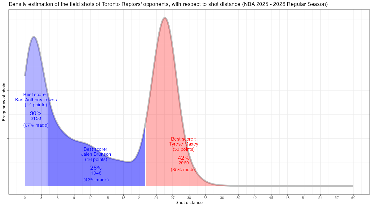 - 【トロント・ラプターズ】対戦チームのシュートチャートとフィールドショット分布 <NBA 2025 – 2026 Regular Season>